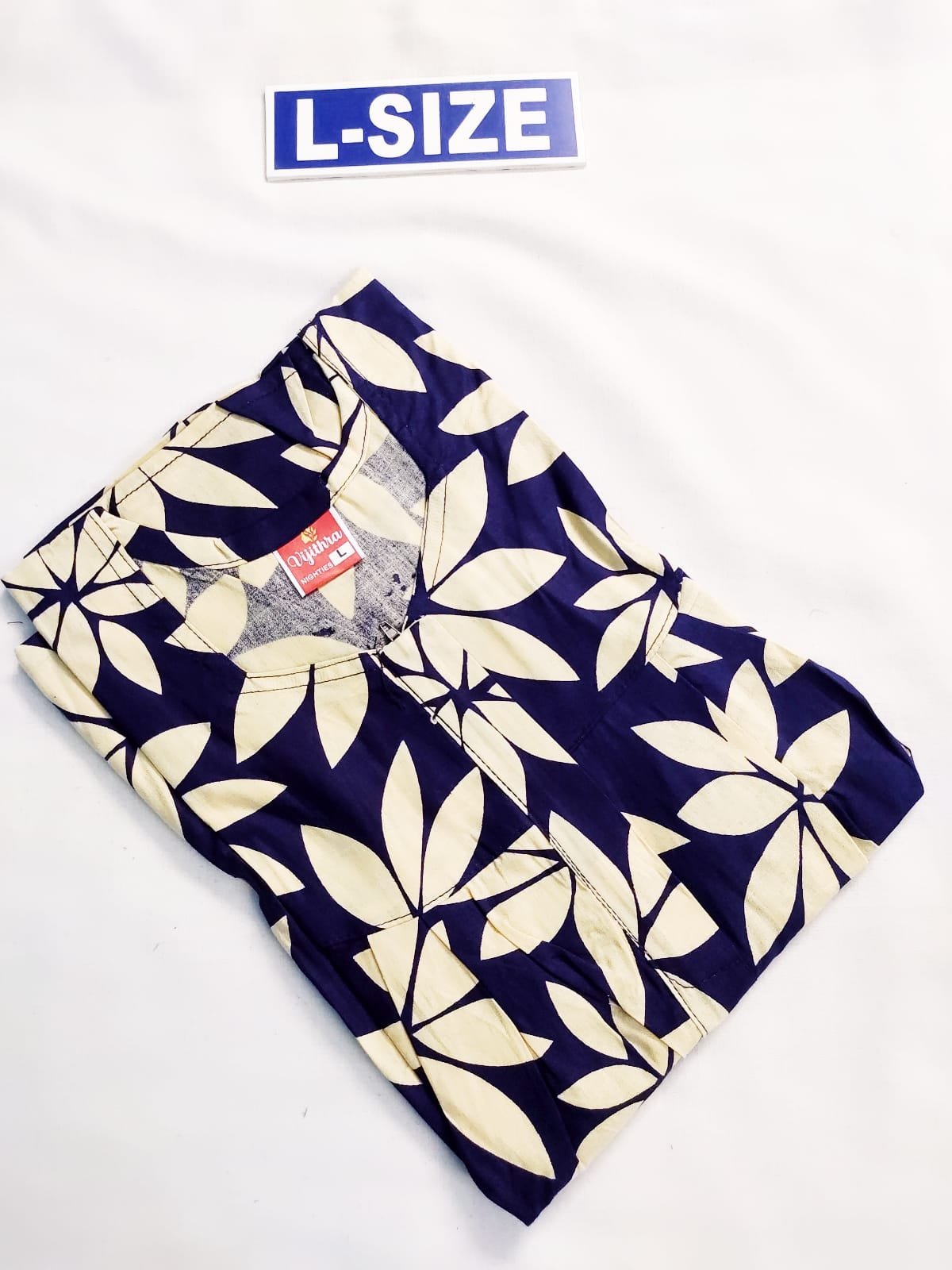 Vikas And Beauty Nighty Blue Color With White Flower Print